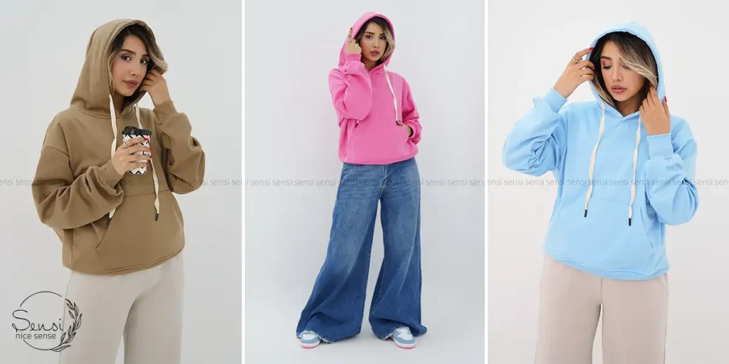 - توجه به جنس: هودیهای دورس یا سویشرت ضخیم برای پاییز و زمستان مناسبتر هستند.