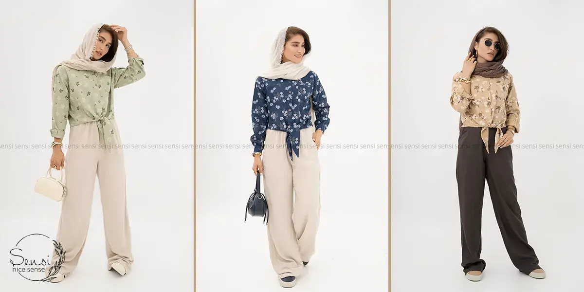 شومیز طرحدار را بهتر است با شلوارهای ساده مثل شلوار جین، شلوار مازراتی یا شلوار لنین تکرنگ ست کنید تا تعادل در استایل حفظ شود.