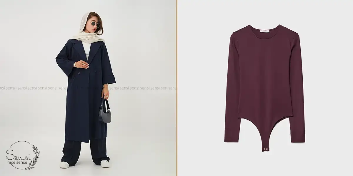 برای روزهای خنکتر، یک بادی نخی ساده زیر مانتوی اورسایز مینیمال راحتی و شیکی را همزمان به شما میدهد. این ترکیب هم حس آرامش ایجاد میکند و هم خطوط مینیمال را حفظ میکند، ایدهآل برای استایل روزانه و شهری است.
