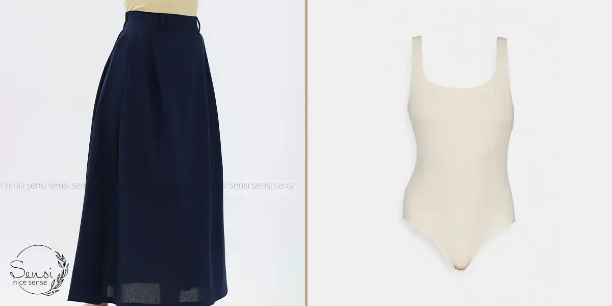 بادی کرم با دامن نخی ساده، ظاهری زنانه و متعادل ایجاد میکند. این ترکیب نه تنها راحت است، بلکه به راحتی با کیف و کفشهای مینیمال ست میشود و ایدهآل برای استایل مینیمال تابستانی است.
