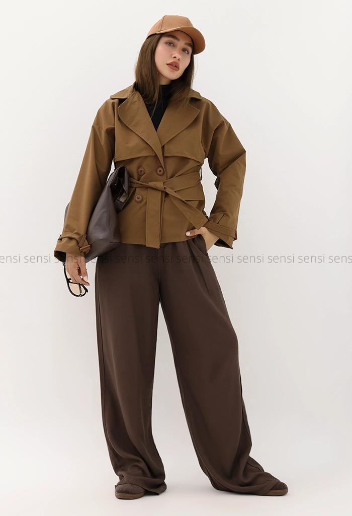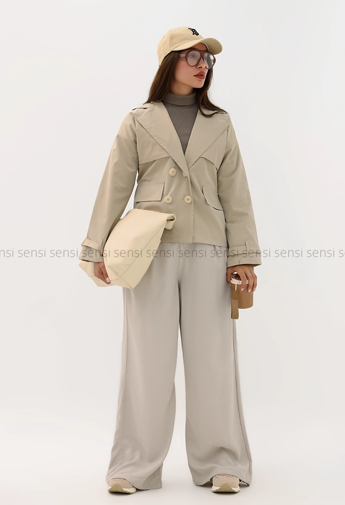 ترنچ کت جلودکمه آستردار@@کد1004294