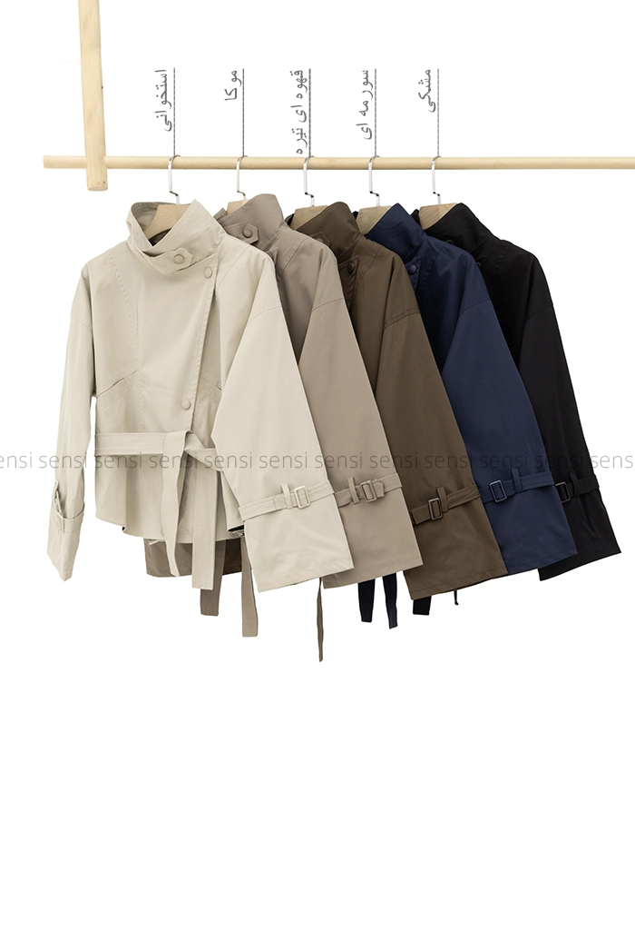 ترنچ کت یقه ایستاده آستر دار@@کد1004624