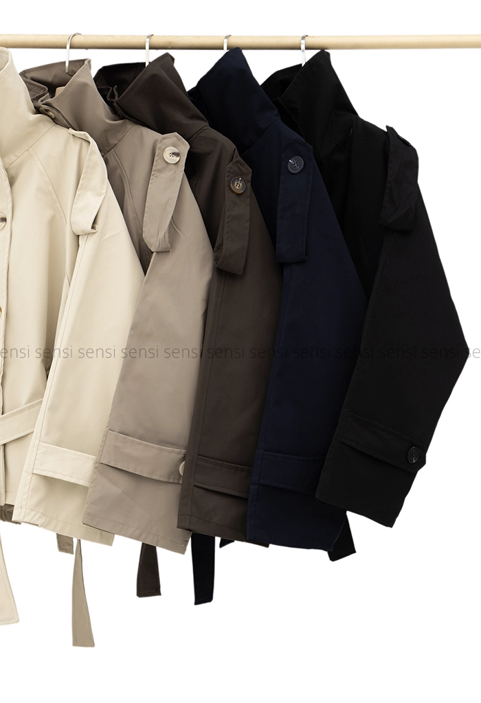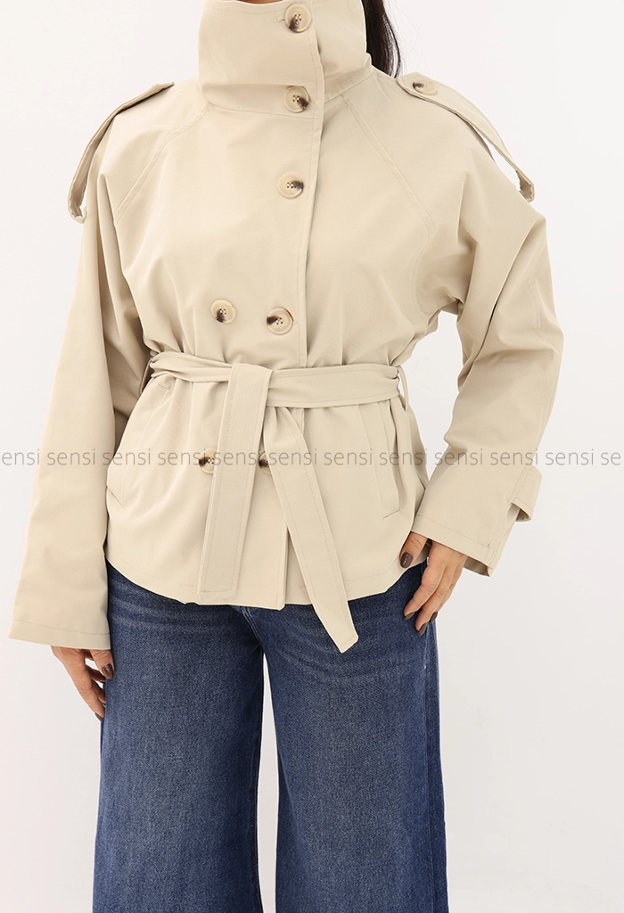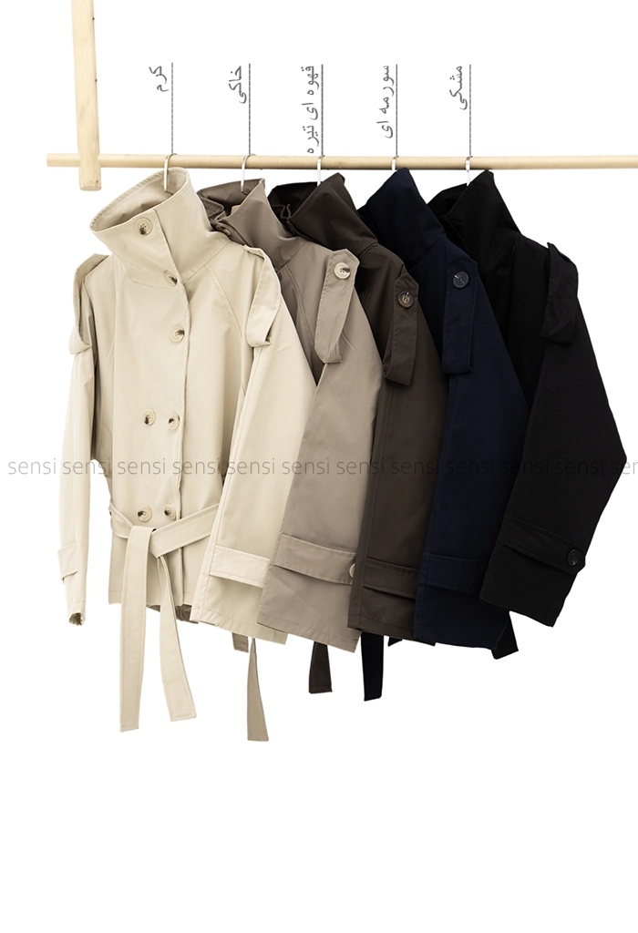ترنچ کت یقه ایستاده کتان @کد1004288