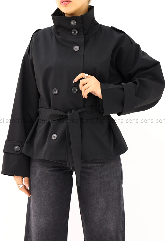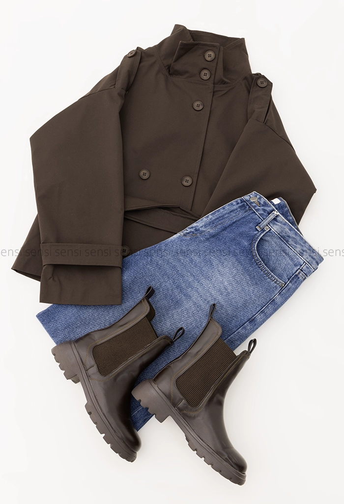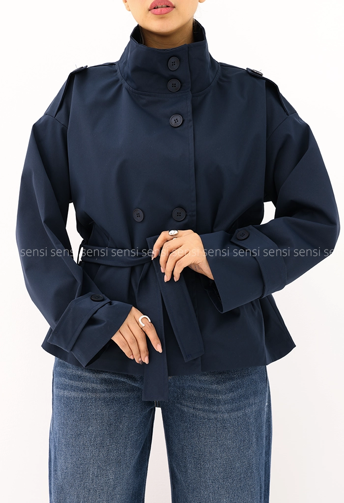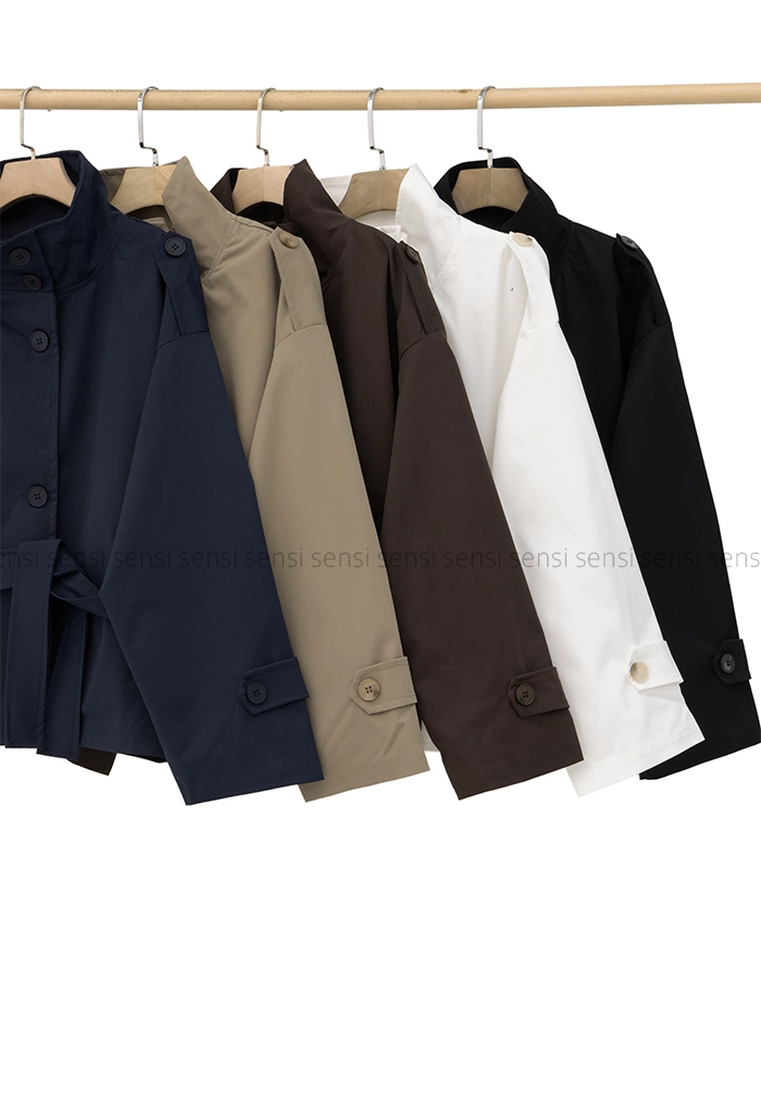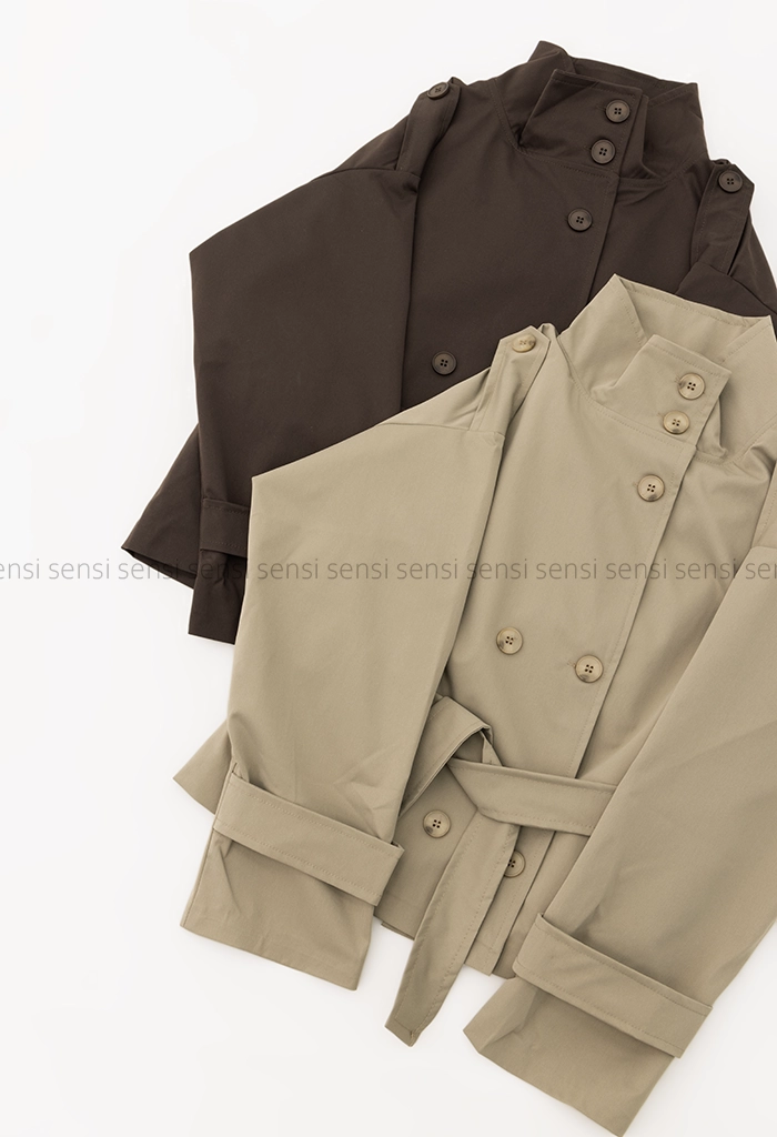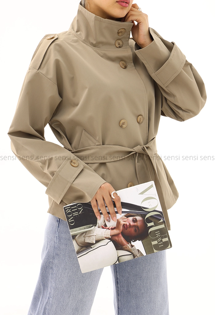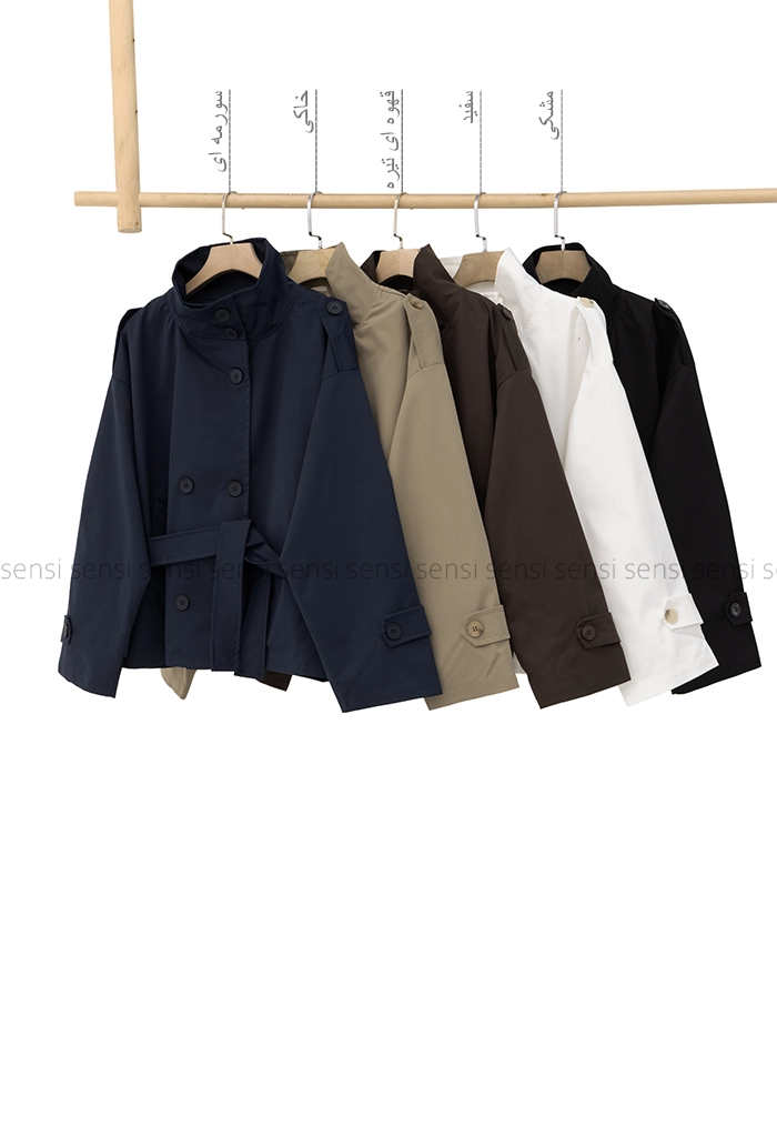 ترنچ کت یقه ایستاده کتان @کد1004520