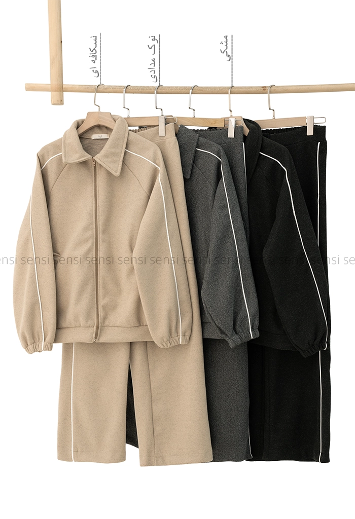 | نحوه بسته شدن | 58سانت زیپ جلوی کار/کش پشت کمر شلوار/کش سرهرآستین /1عدد دکمه جلوی شلوار /17سانت زیپ جلوی شلوار |