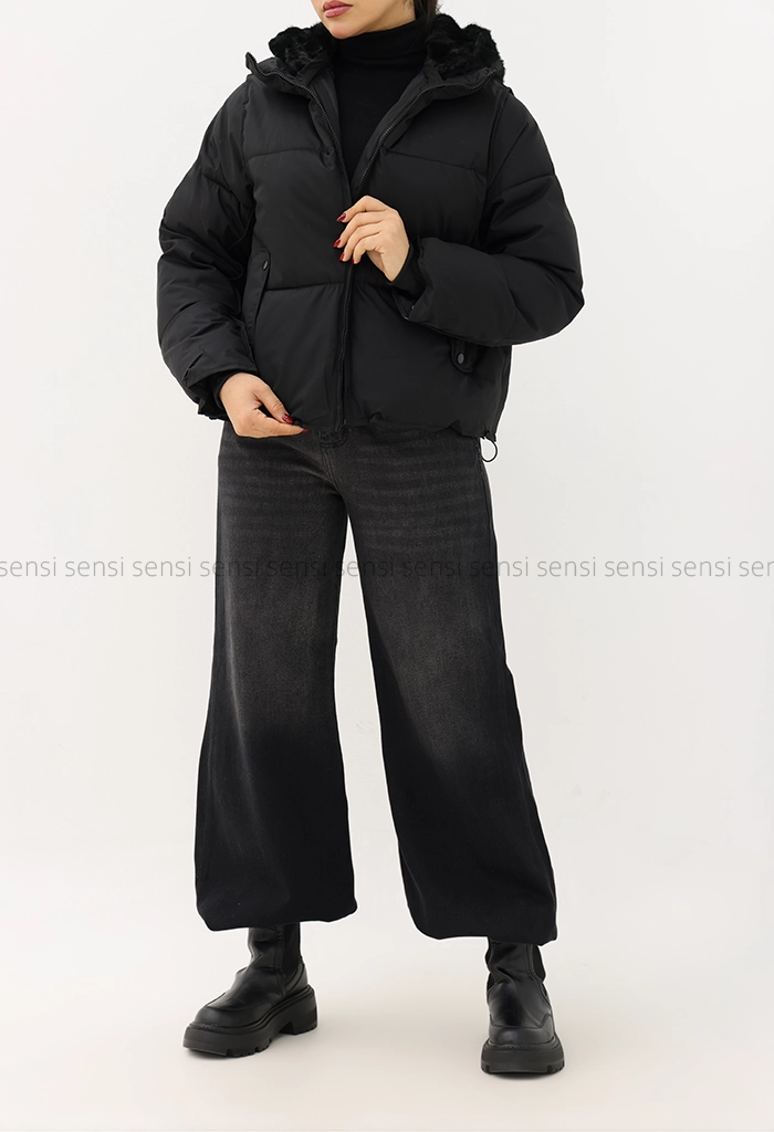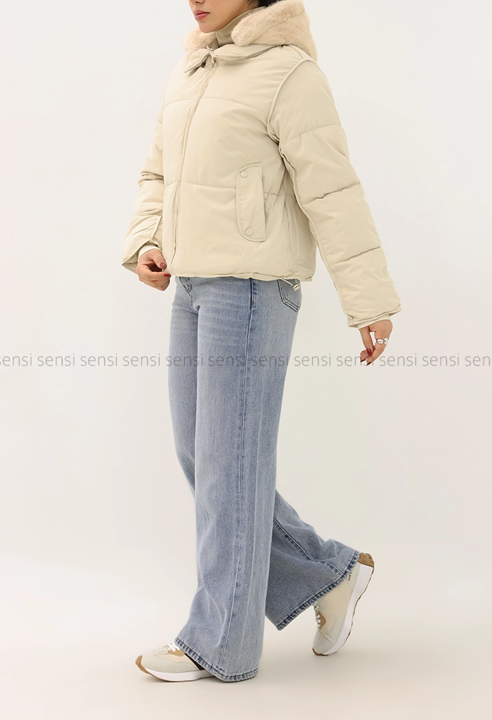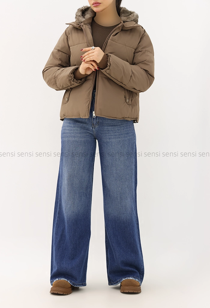 کاپشن وارداتی آستر دار کلاه پوست کد1004857